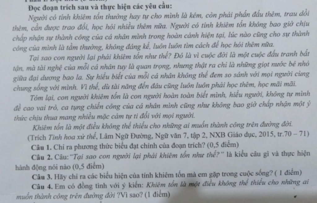 Em đồng tình với quan điểm đó vì cá nhân dù có tài năng đến đâu cũng chỉ là những giọt nước bé nhỏ giữa đại dương bao la, đều không phải là những cá thể hoàn hảo 100%. Vì vậy luôn phải giữ cho mình 1 tinh thần cầu tiến, ham học hỏi. Khiêm tốn là biểu hiện của con người đứng đắn, biết nhìn ra trông rộng, được mọi người yêu quý,từ đó giúp con người biết mình và hiểu người.
