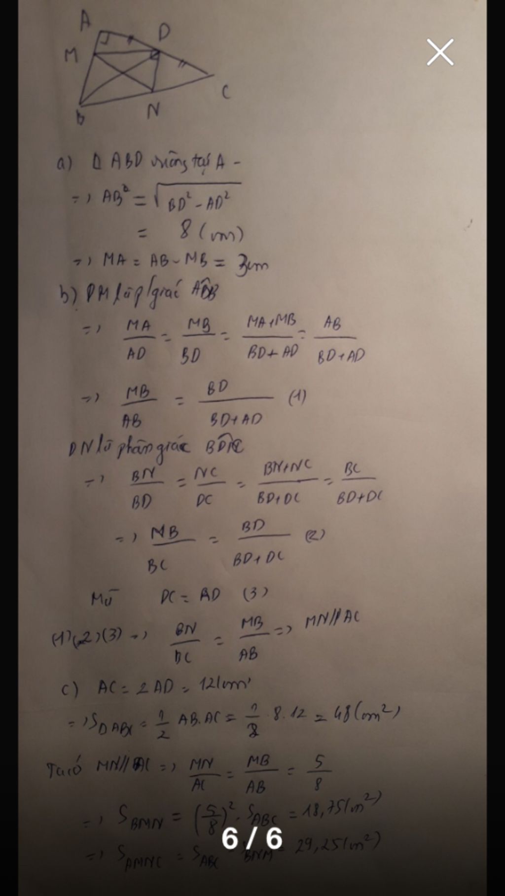 Suy ra MA = AD.MB/BD = 6.5/10 = 3 (cm)