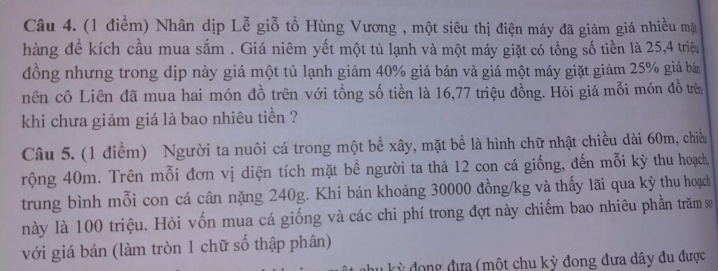 Giải hệ (1)(2) ta có $a=15,2; b=10,2$ (TM)