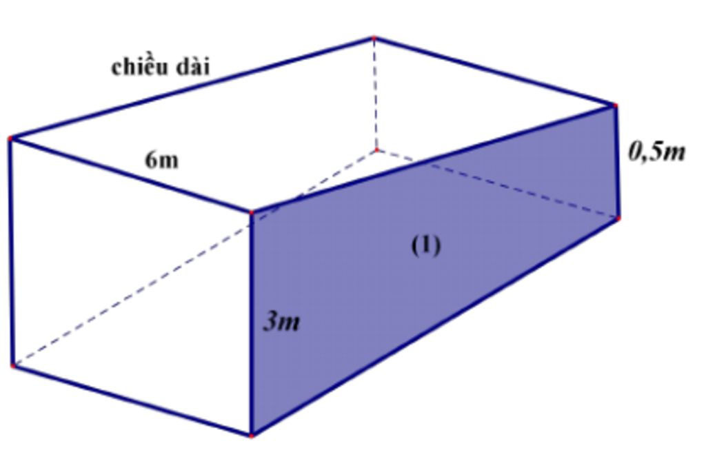 Hồ có dạng là một lăng trụ đứng đáy là hình thang vuông (1) nên chiều cao là 6m