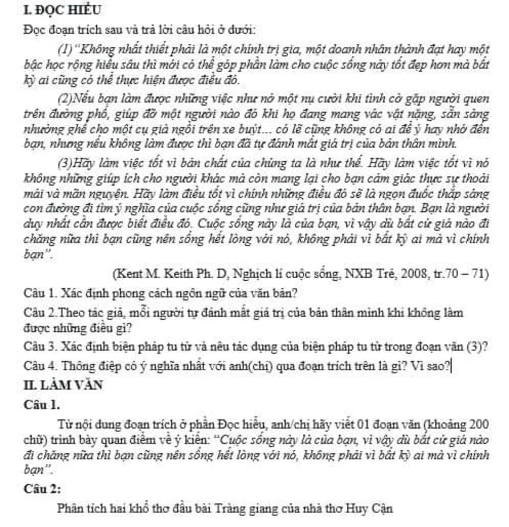 PHẦN ĐỌC HIỂU