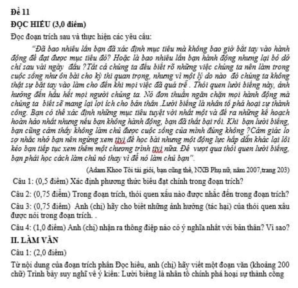 - Từ đoạn thói quen lười biếng này cho đến hết
