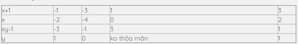 Vì vậy, x + 1; xy - 1 ∈ Ư(3) = (±1; ±3)