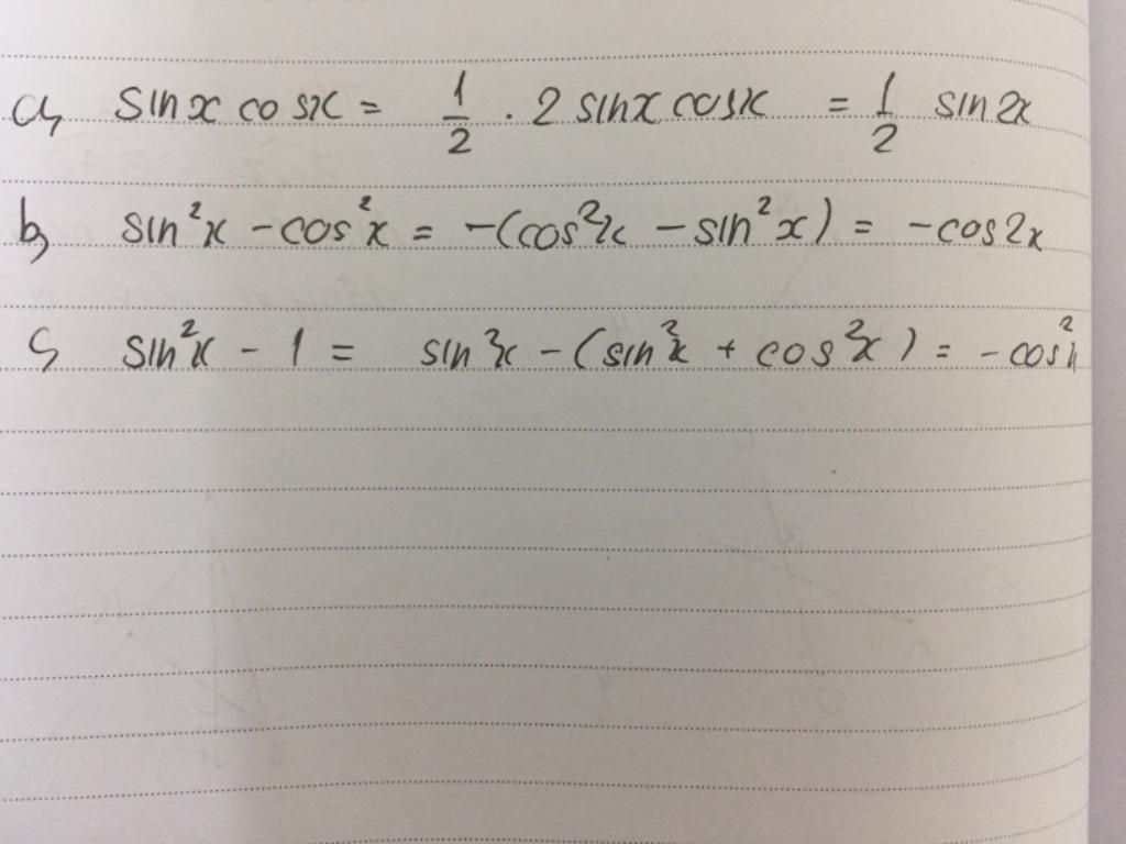 B,sin²x- cos²x= 1- cos²x-cos²x = 1- 2cos²x=-cos2x