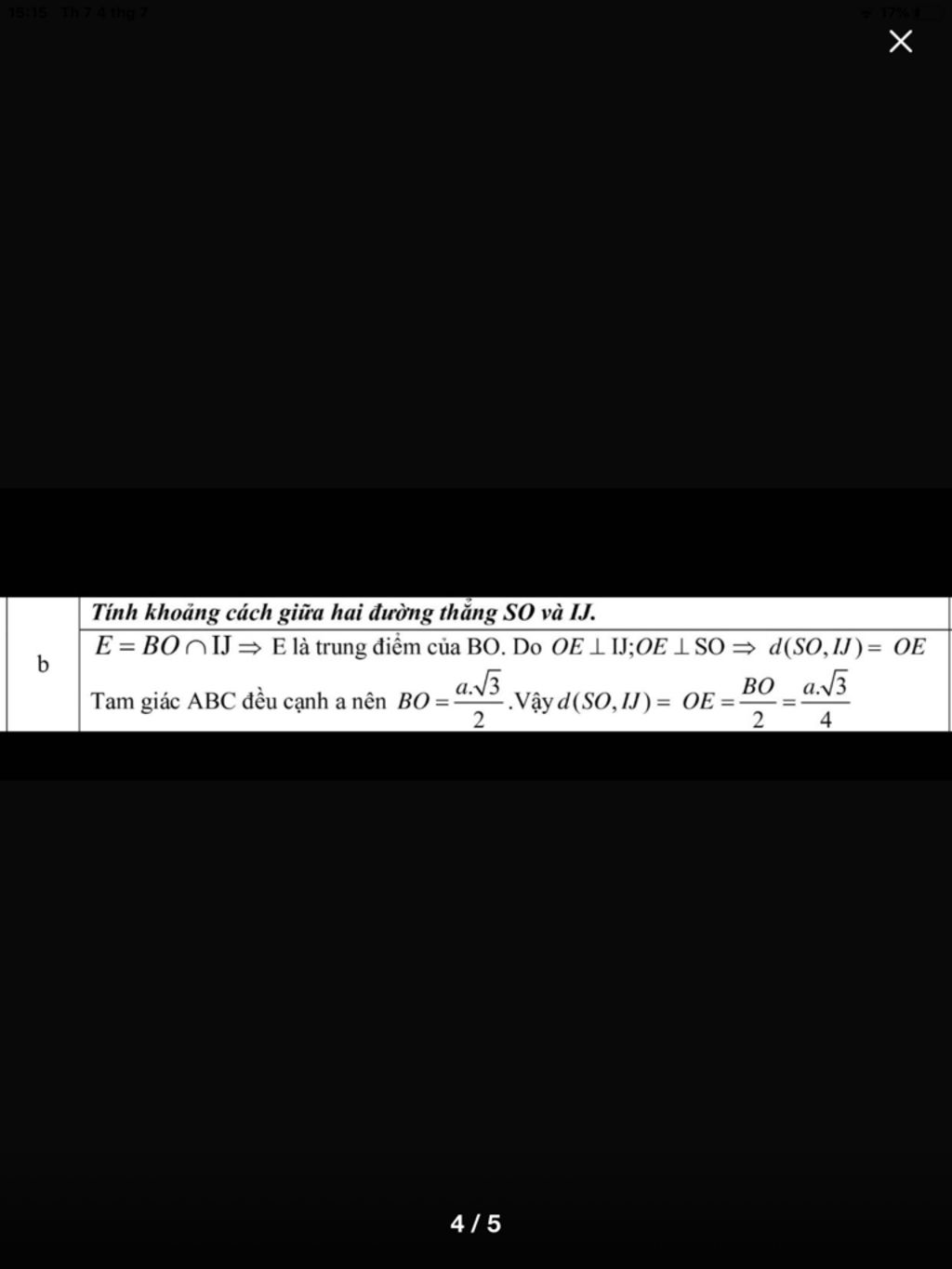 b) tính khoảng cách giữa đường thẳng SO và IJ