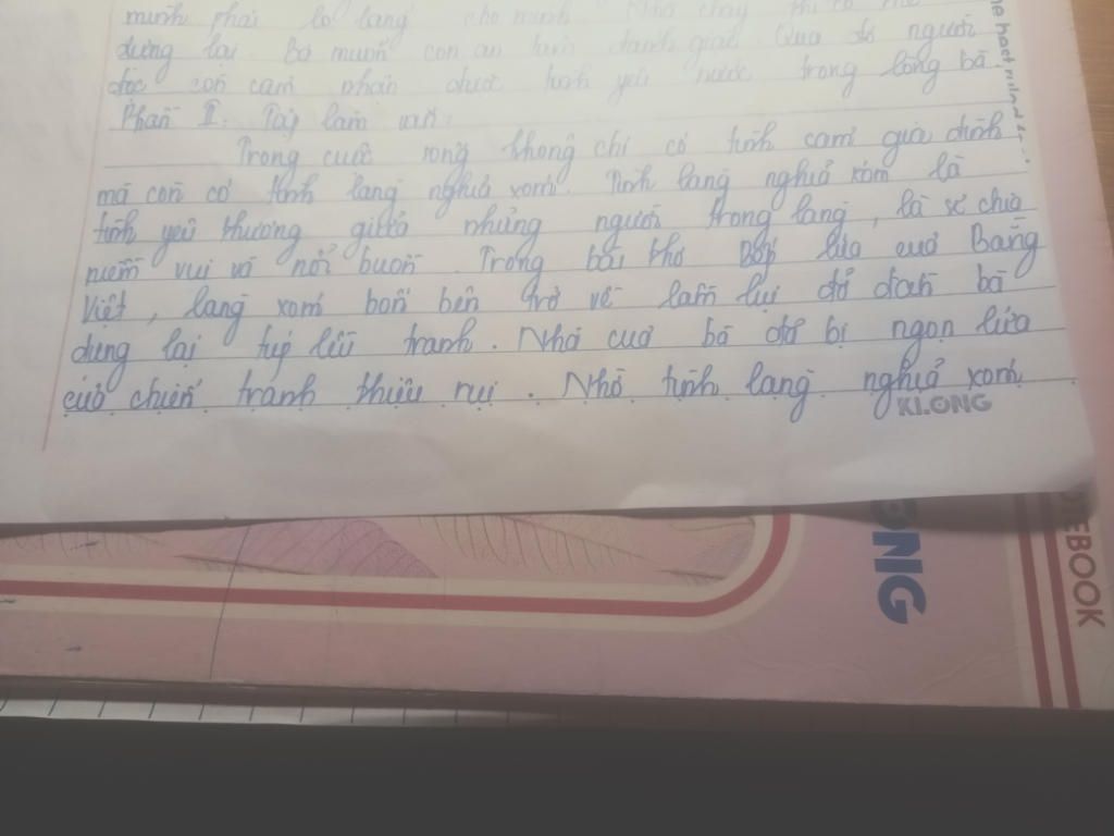 Tình làng nghĩa xóm luôn là thứ tình cảm khiến người ta trân trọng và nhớ mãi. Đó là tình cảm giữa những người hàng xóm láng giềng, là sự quan tâm, sẻ chia, giúp đỡ "tối lửa tắt đèn có nhau". Đồng thời tình cảm này cũng thể hiện truyền thống tốt đẹp của nhân dân ta từ nhiều đời nay, vẫ được phát huy và duy trì đến bây giờ, ấy chính là tinh thần đoàn kết, lòng nhân ái. Dẫu có nghèo về vật chất, nhưng cái tình, cái nghĩa lại đầy ắp trong từng con người, làng xóm Việt Nam. Từ xưa, trong kho tàng tục ngữ Việt Nam đã có câu tục ngữ “Bán anh em xa mua láng giềng gần” để nói đến tầm quan trọng cũng như giá trị của tình làng nghĩa xóm trong cuộc sống thường ngày của con người. Bởi lẽ con người luôn tồn tại trong một tập thể, chẳng ai có thể sống mà tách khỏi cộng đồng. Tình làng nghĩa xóm được hình thành từ đó. Tình làng nghĩa xóm có thể bắt nguồn từ những hành động vô cùng đon giản: chia sẻ cùng nhau những món quà quê, tụ tập lại cùng nhau,...Tình cảm giữa những người láng giềng thực sự đáng quý, đặc biệt là đối với những người xa quê, những người nơi đất khách quê người. Chính vì vậy, bản thân mỗi người cần biết vun đăp và làm giàu thêm tình làng nghĩa xóm, cùng nhau những xích mích nhỏ nhặt. Từ đó xây dựng cộng đồng lớn mạnh và tràn ngập tình yêu thương, giúp đỡ.