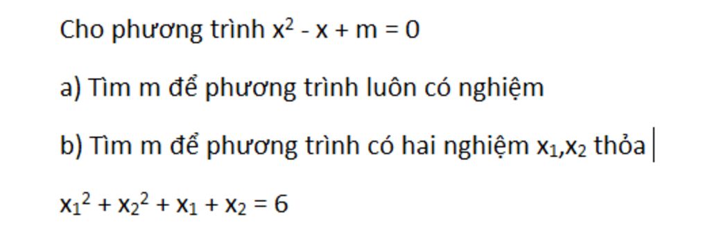 Để phương trình luôn có nghiệm thì $\Delta \geqslant 0 \Rightarrow 1 - 4m \geqslant 0 \Rightarrow m \leqslant \dfrac{1}{4}$