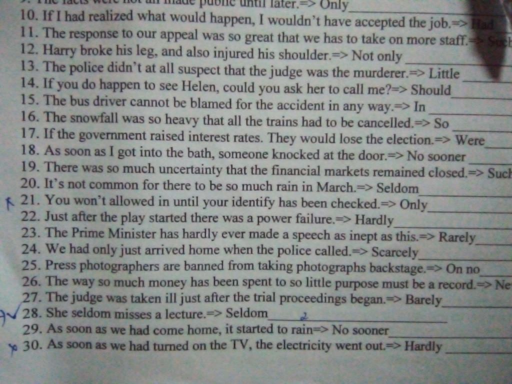 30. Hardly had we turned on the TV, the electricity went out.