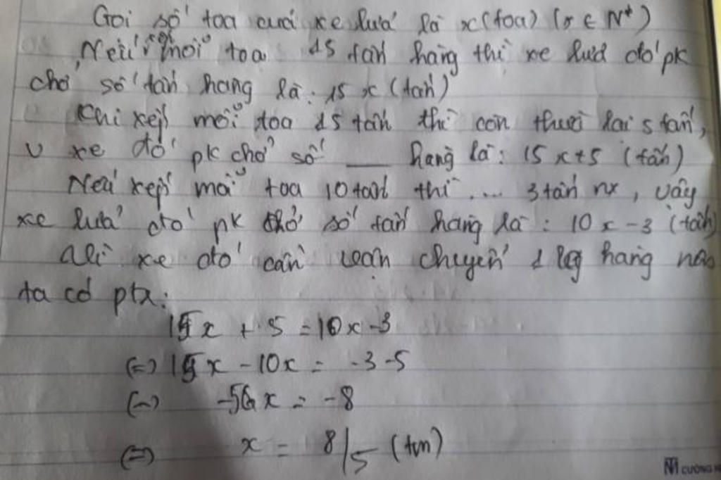 Vậy xe lửa có 8 toa và cần phải chở 125 tấn hàng.