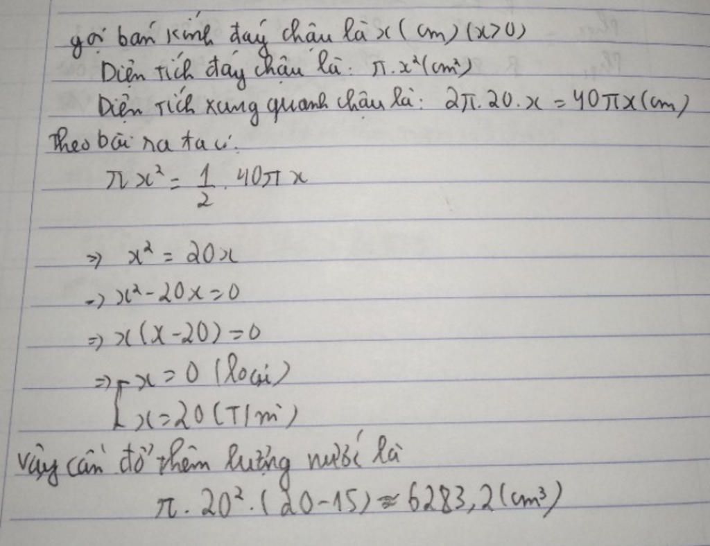 Diện tích xung quanh: $S_{xq}= 2r\pi.h= 40r\pi $