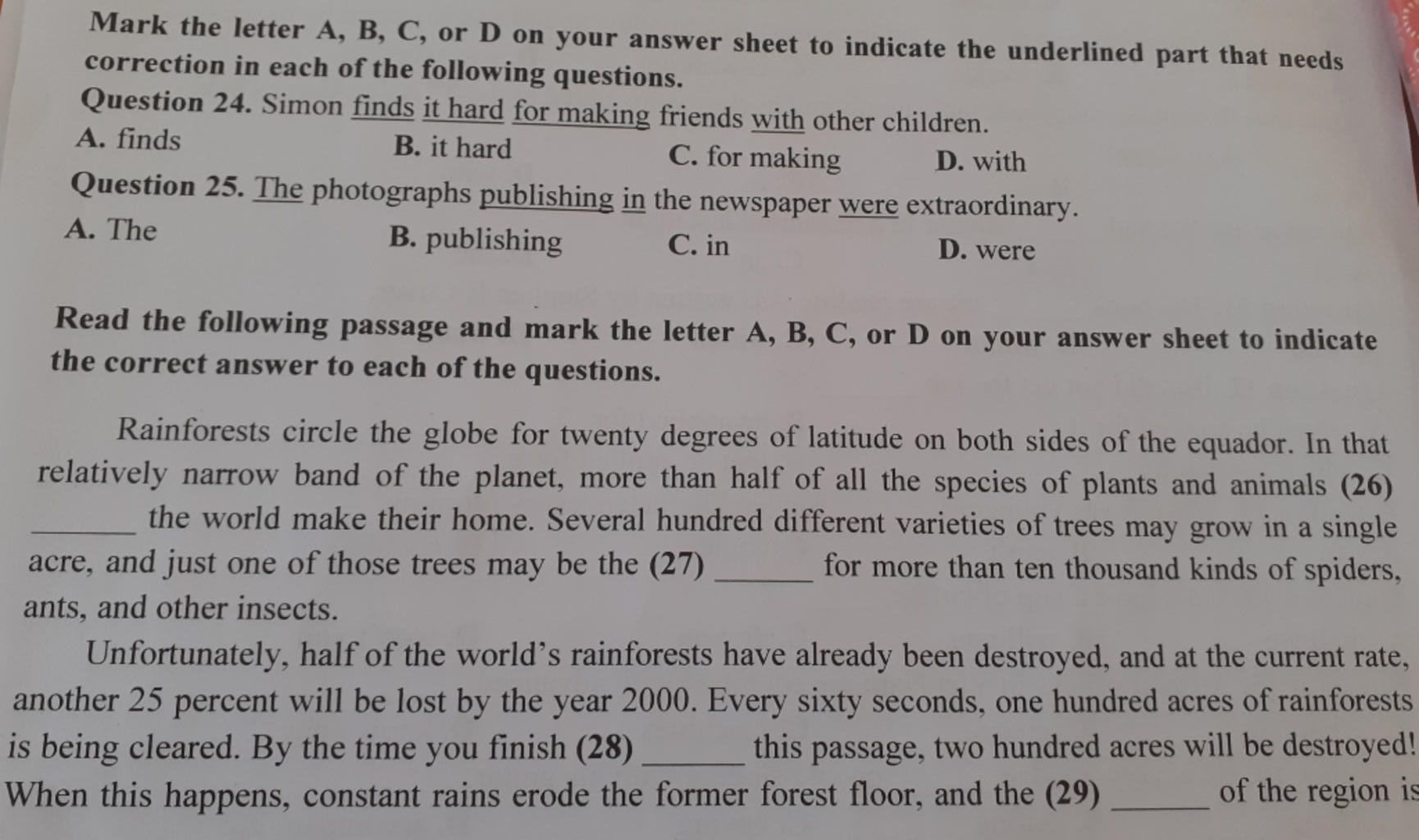 Question 24. Simon finds it hard for making friends with other children.