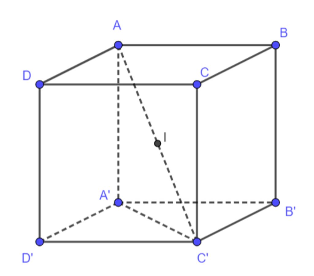 Tâm của hình cầu ngoại tiếp khối lập phương là trung điểm của cạnh AC' là $I$