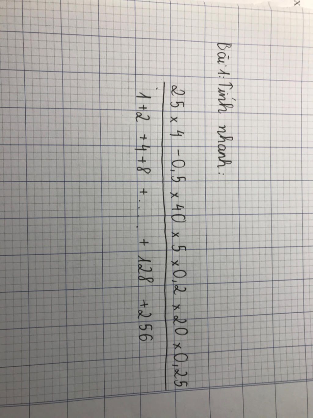 Vậy $\dfrac{25\times4-0,5\times40\times5\times0,2\times20\times0,25}{1+2+4+8+...+128=256}=0$
