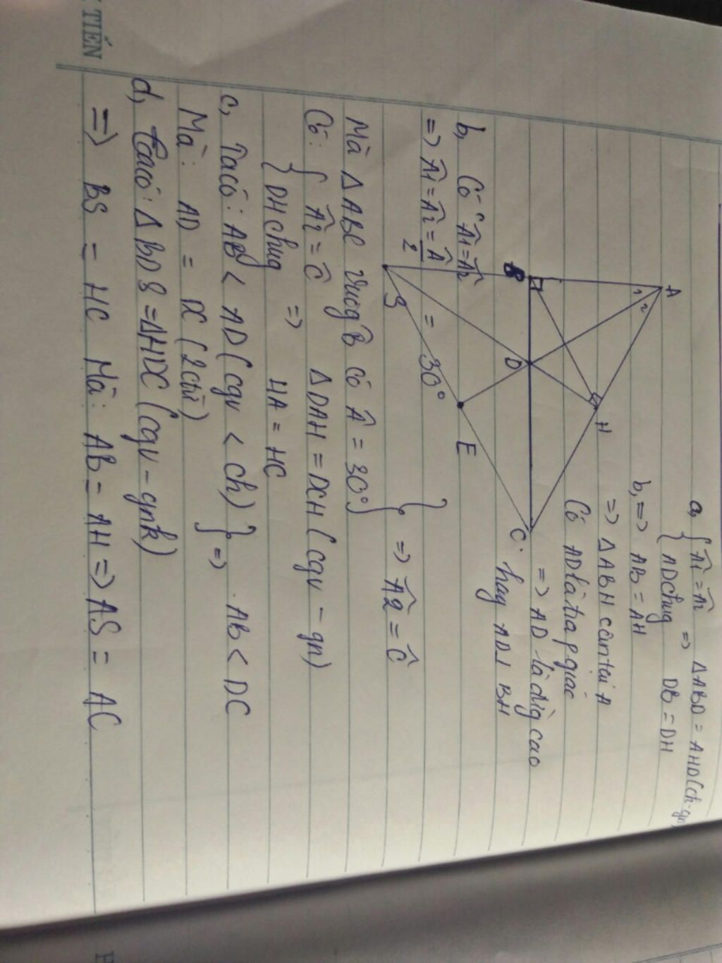 =>AB=AH(2 cạnh t/ứ)
