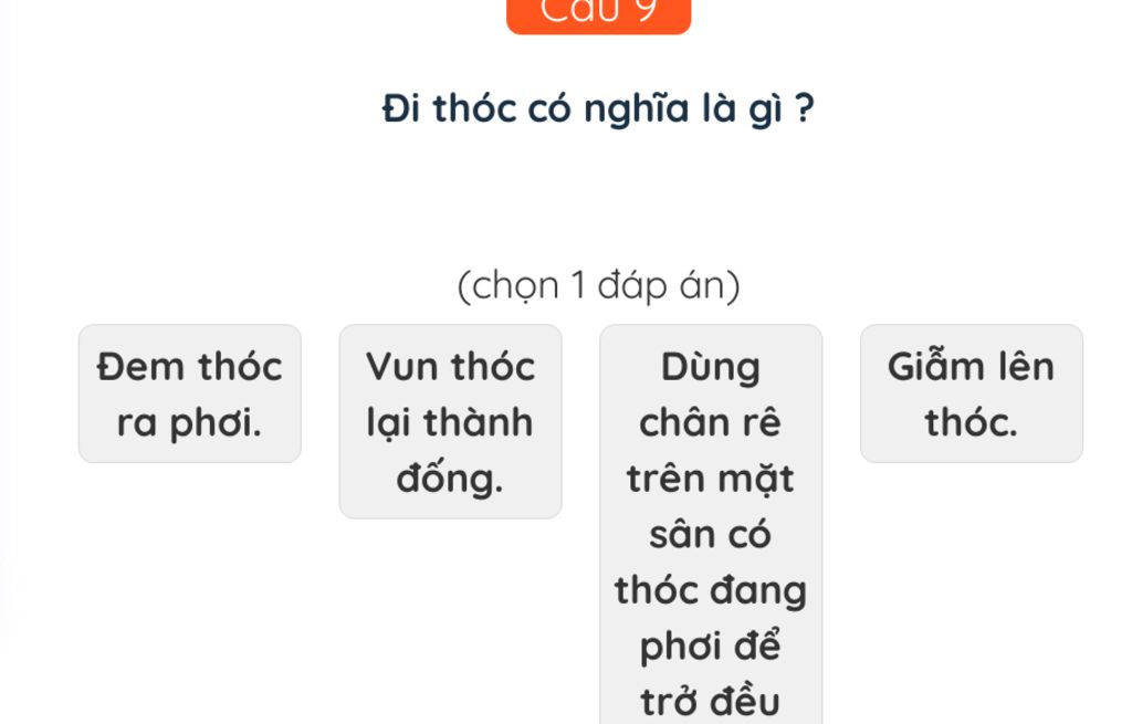 $\text{Dùng chân rê trên mặt sân có thóc đang phơi để trở đều}$