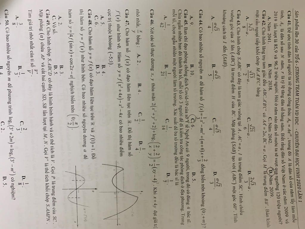 Lại có: $V_{S.ABC}=\dfrac{1}{3}.SH.S_{ABC}=\dfrac{1}{3}.\dfrac{a\sqrt{3}}{2}.\dfrac{1}{2}.AB.AC=\dfrac{a^2\sqrt{3}}{12}.AB$(2)