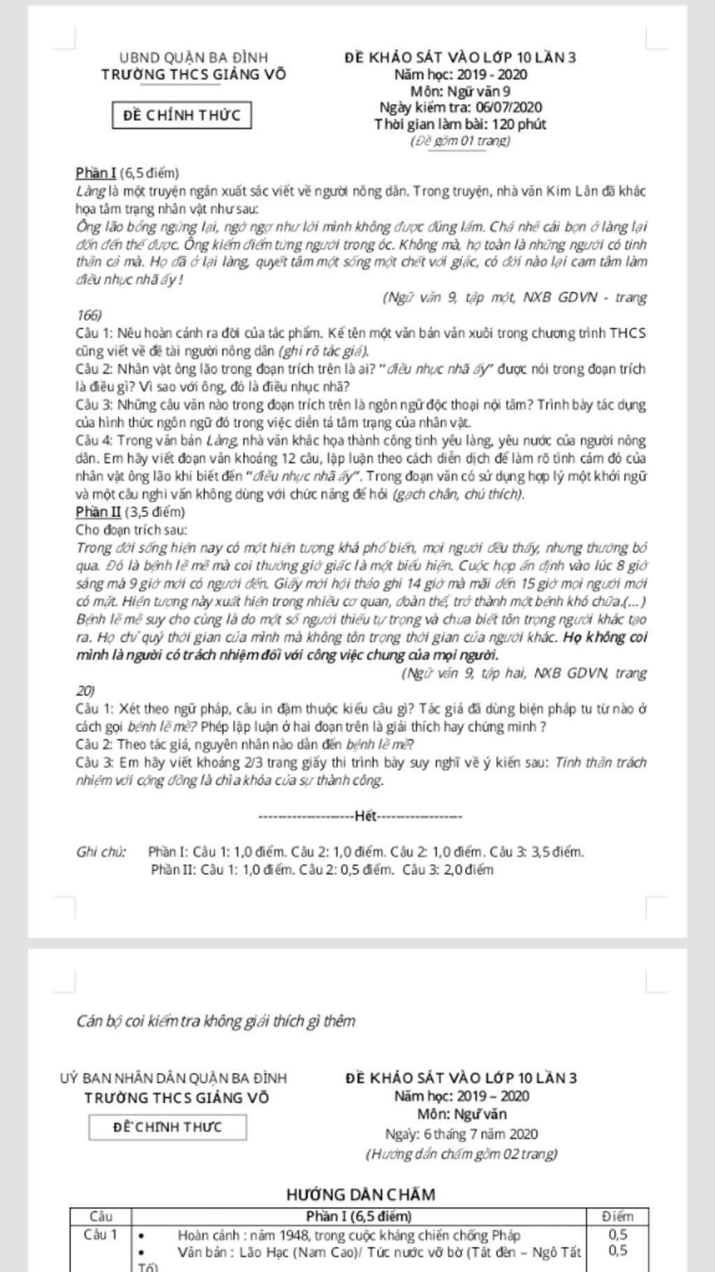 Câu 2: Nhân vật ông lão trong đoạn trích là: ông Hai. Điều nhục nhã ấy là tin làng chợ Dầu theo tây. Vì làng Dầu là làng ông Hai luôn tự hào và hãnh diện là làng kháng chiến, làng cách mạng.