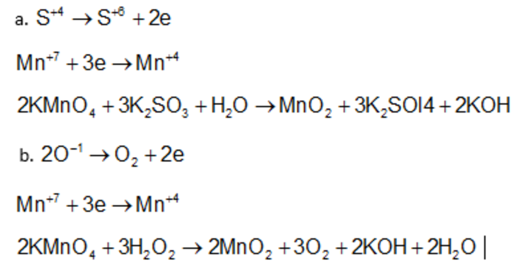 2KMnO4 +3H2O2 -> 2MnO2 + 3O2 + 2KOH + 2H2O