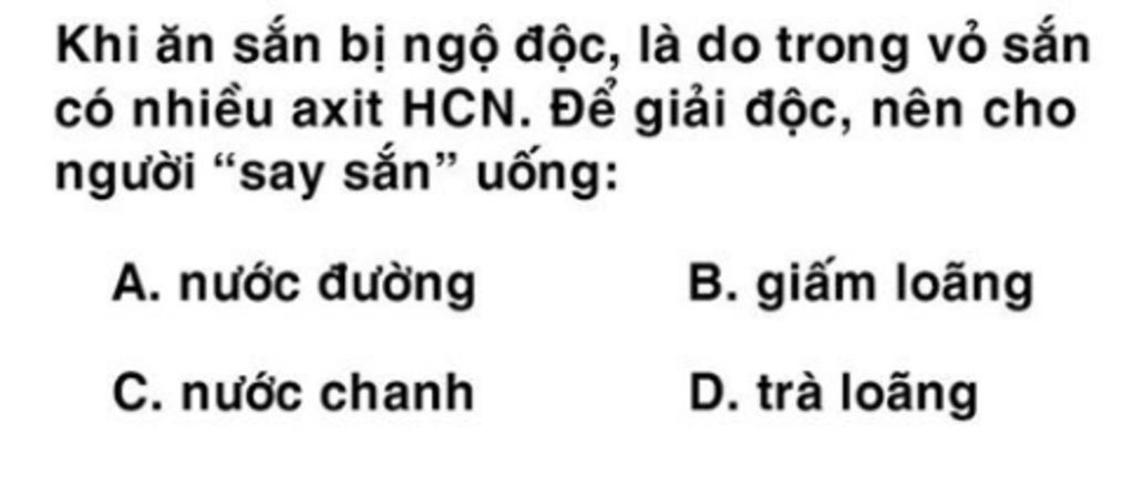 Nước đường chứa saccarozơ, trong môi trường axit (dịch vị dạ dày) thuỷ phân thành glucozơ. Glucozơ làm giảm lượng HCN trong cơ thể.