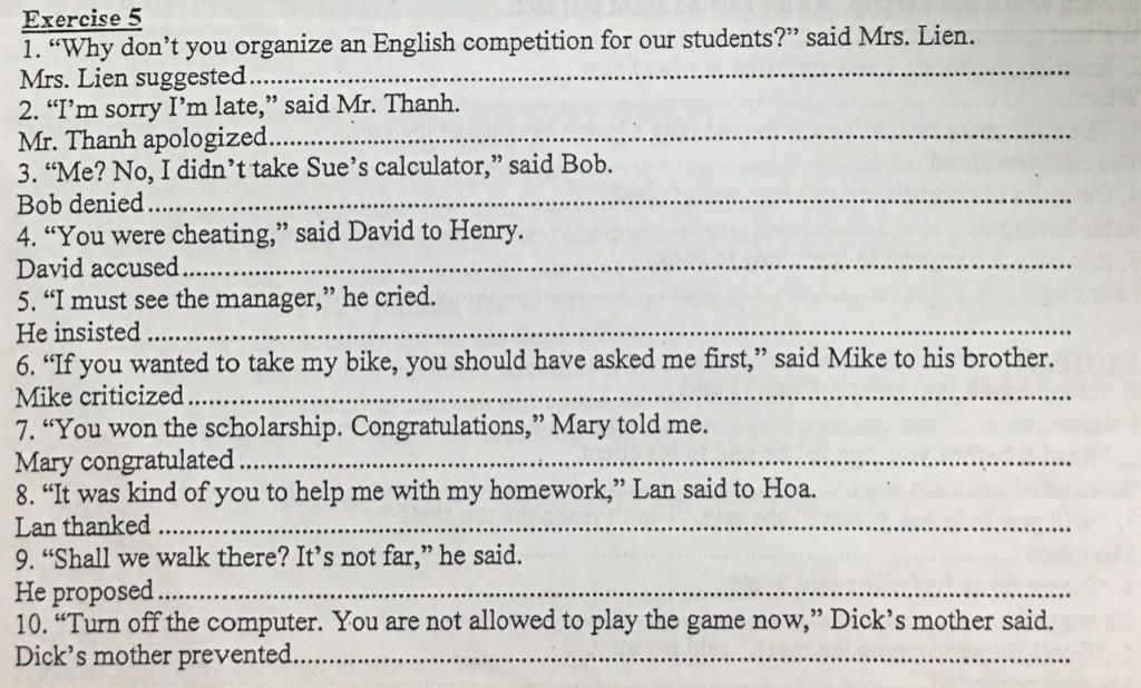 1.Mrs.Lien suggested her to organize an English competition for their students.