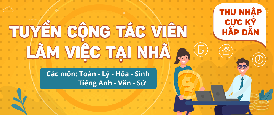 Chúng tôi cần tuyển cộng tác viên trên khắp Việt Nam, trên 18 tuổi, hiện đang là sinh viên hoặc giáo viên các phân môn Toán, Lý, Hoá, Sinh và Tiếng Anh yêu thích công việc giải các bài tập mỗi ngày.